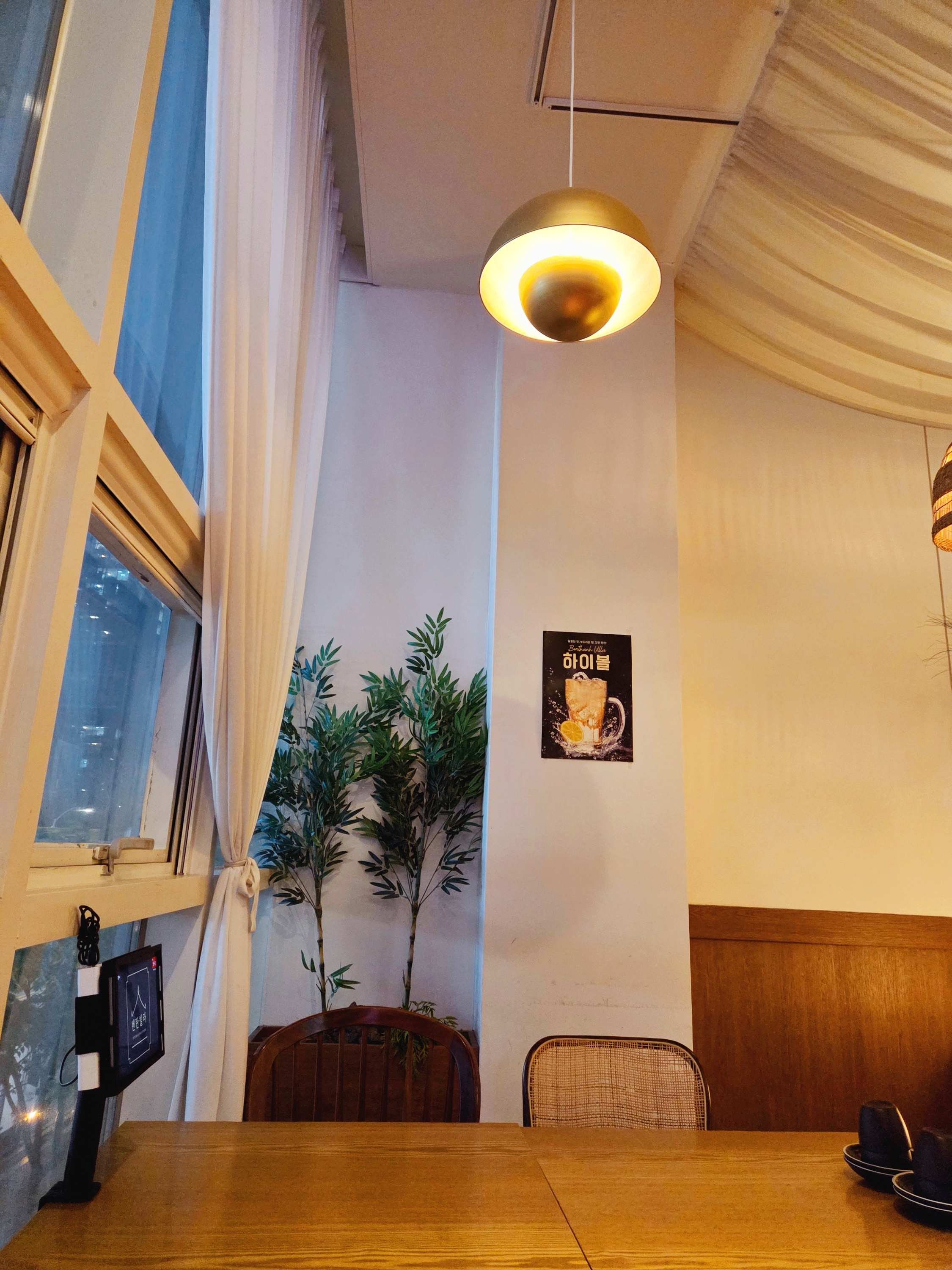 식당에 들어서자마자 느껴지는 높은 층고와 세련된 인테리어, 그리고 은은한 조명은 마치 동남아의 고급 리조트 레스토랑에 온 듯한 느낌을 줍니다. 모던하면서도 따뜻한 분위기